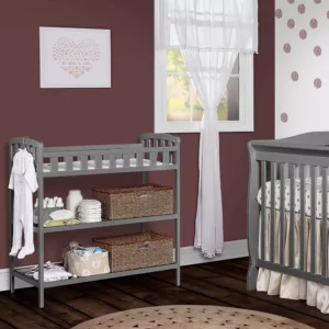 A changing table is a nursery must have and the Emily, with its blend of safety, style and functionality, makes for the perfect choice. It occupies a small footprint and is ideal for small nurseries. It is lightweight and easily portable allowing you to move it around easily to ensure you can change LO anywhere at home with ease The mattress changing platform comes with a 1” changing pad, creating a convenient space for diaper changing. The Emily comes with two easy-to-reach, spacious shelves below the changing table that allow you to keep your LOs essentials neatly organized and easy to access! It is made of durable, sustainable and renewable New Zealand pinewood and boasts a stable design With safety rails on four sides the changing table is a fully enclosed & secure space. It is tested for lead/other toxic elements and meets applicable CPSC/ASTM standards. Comes with an anti-tipping tool kit. It sports a minimalist, clean design and is available in five stylish finishes. Mix and match with Dream On Me Cribs as you design a beautiful and fun nursery space for your child. Product dimensions are 36.5Lx20Wx39H inches, weighs 19.5 lb